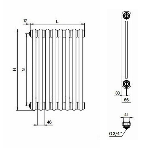 | Подключение | нижнее одностороннее с термостатическим клапаном |