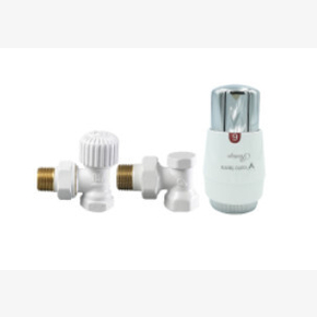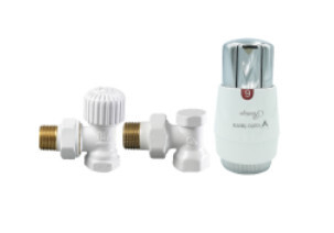 Термостатический комплект „Elegant”, угловой или прямой, GW ½” / GZ ½”. В комплекте: термостатический клапан „SFK” или „SFP”, запорный клапан „FK” или „FP”, термоголовка „Prestige” или „Picco”.