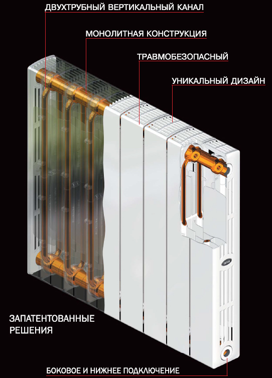 Rifar Supremo 500 с боковым типом подключения имеет травмобезопасную форму и оригинальный внешний вид, значительно отличающийся от большинства биметаллических секционных радиаторов.