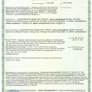 Радиатор Rifar Base 200 Ventil 13 секций биметаллический c нижним подключением