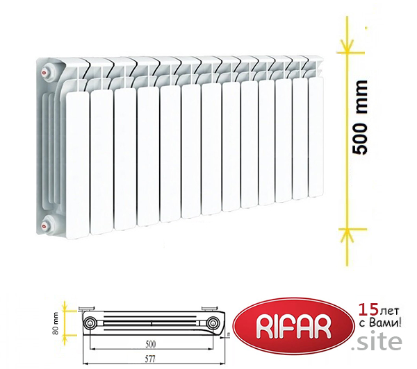 Биметаллические батареи Rifar Base 500 самые мощные представители коллекции, приборы выпускаются с межосевым расстоянием 500 мм и являются самыми высокими по сравнению с остальными подсериями. Как правило, секционные батареи данной модели устанавливают в больших помещениях: на складах и производствах, в торговых площадках и выставочных центрах, в коттеджах.